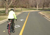 Where should this cyclist be riding?