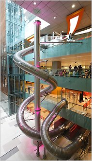 For every $22 spent in the airport, adrenaline junkies (or really brave little kids) get tokens for two rides on the slide. Visitors who don’t want to travel at the speed of 19 feet a second, can take a ride down the shorter, one-and-a-half-story tall slide located at Terminal 3 Basement 2, which is free.