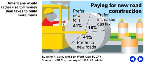 It’s also interesting that the sentence to the left of the poll summarizes it as “Americans would rather use tolls than taxes to build more roads,” when it could have just as easily been “Americans are OK with building no new roads if it means raising the gas tax or instituting tolls to pay for them.”