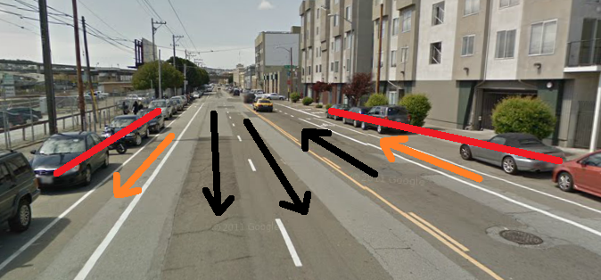 Had that thought yet again (and it’s not a new argument) when I was trying to have a conversation with a friend this weekend in SF on my way to Sunday Streets. Every time I or my friend snuck up on the side of each other so we could actually have a discussion — or just point out something interesting — we got chased back into the bike lane by zooming motor vehicles. Being forced to single-file it everywhere can make biking a lonely experience — we deserve better.